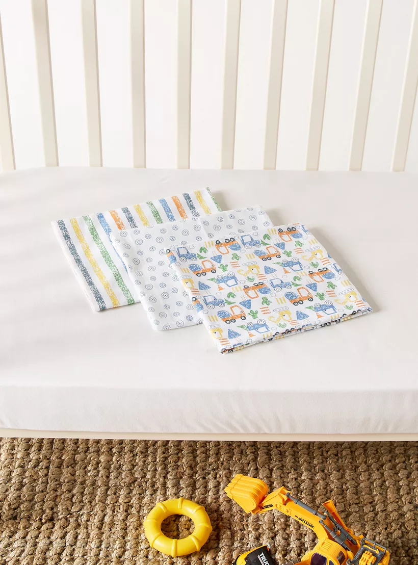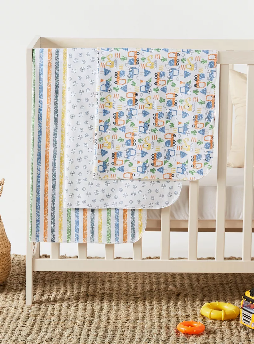 Juniors 3-Piece Printed Flannel Swaddle Wrap Set - 75x75 cms